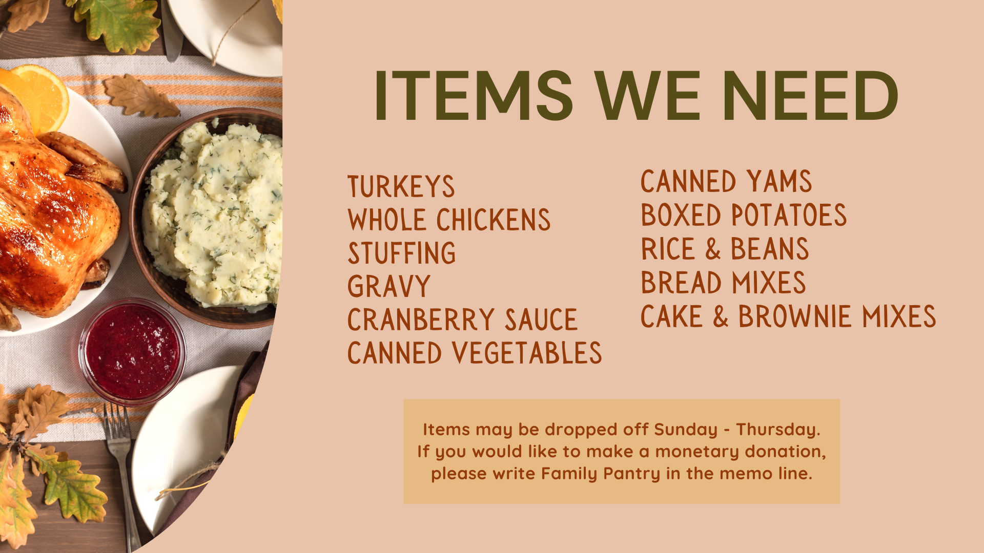 Packing Baskets and Distributing: Wednesday, November 19 | 10am-4pm | Room 101